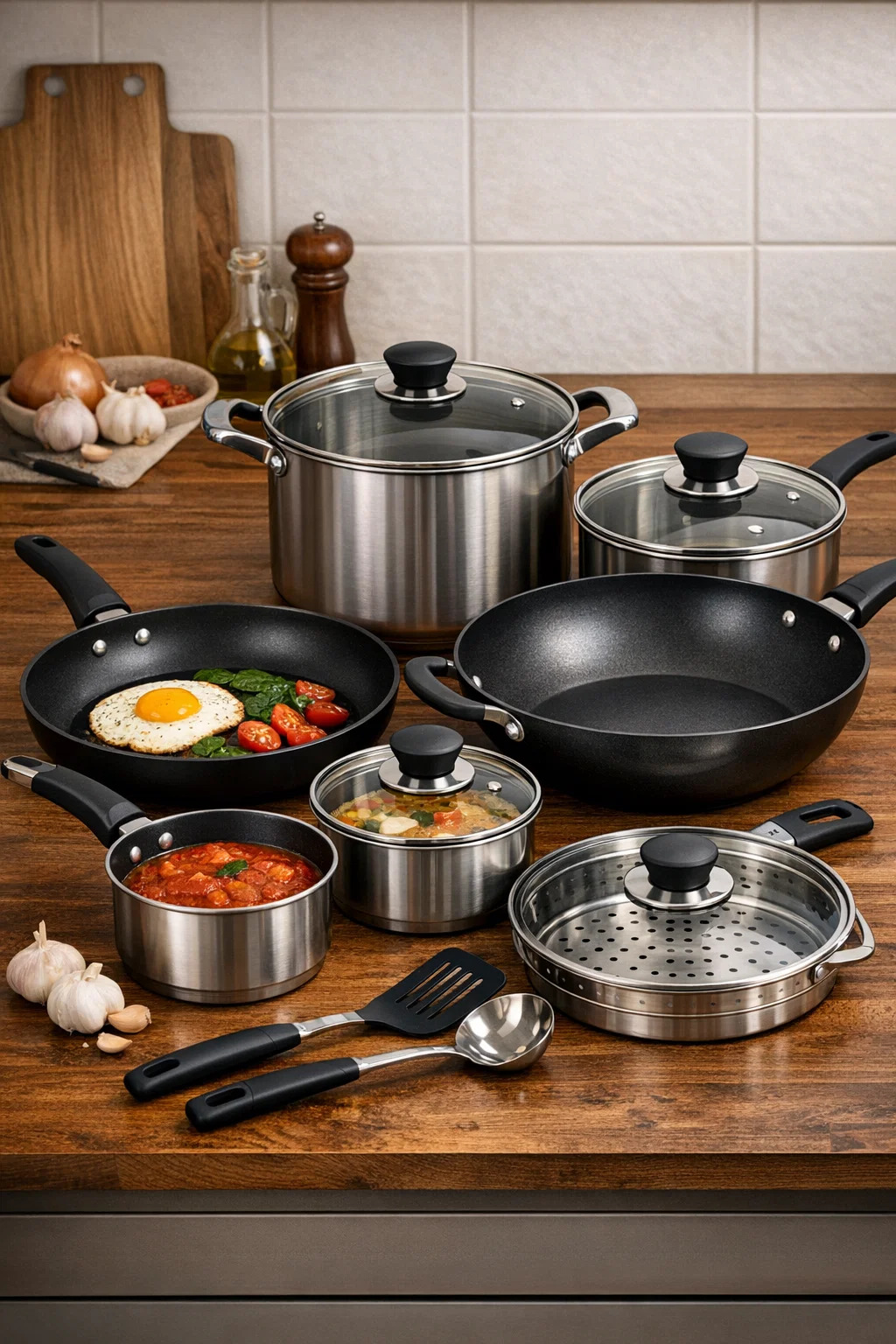 En komplett set med köksredskap är som en multifunktionell verktygslåda, som innehåller olika "professionella verktyg" för att hantera olika ingredienser och tillagningsmetoder. Med detta kompletta set kan du enkelt hantera allt från en enkel frukost med stekt ägg till en påkostad familjemiddag.