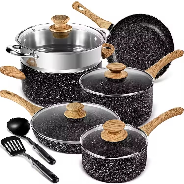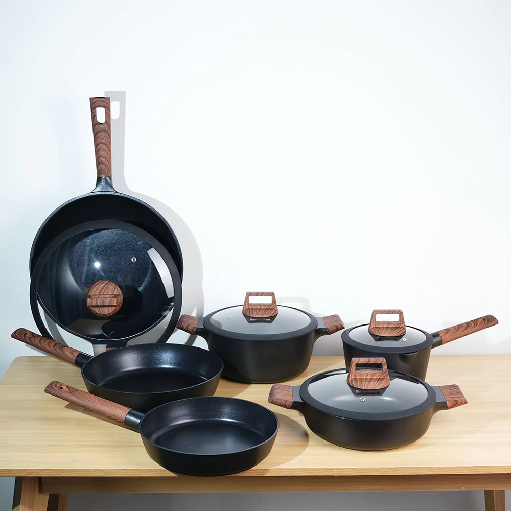 Non Stick Köksredskap Set Svarta köksredskap grytor och stekpannor Wholesale