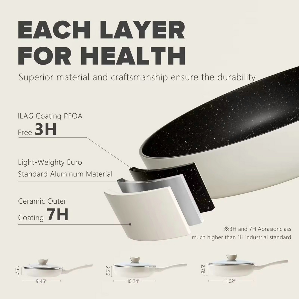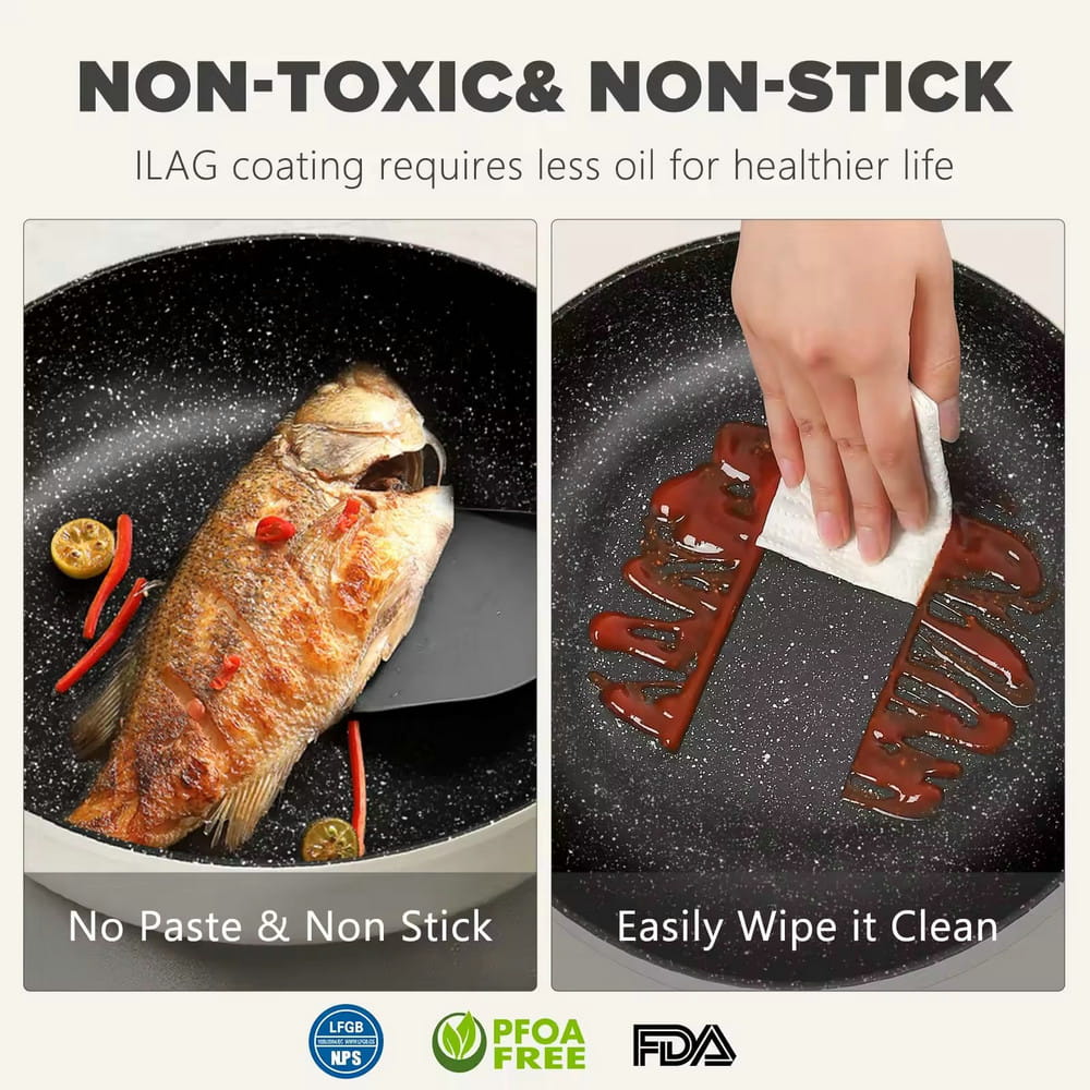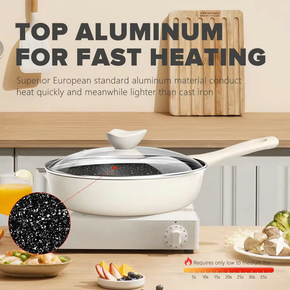 Lätt, nonstick stekpanna i granitsten för matlagning med glaslock