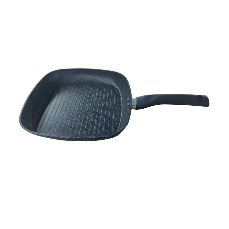 Hem / Produkt / Grillpanna / Non-stick gjuten aluminiumgrill Pan Square Mjuk beröring Håller sig kallt Handtag PFOA-fri beläggning Induktionskompatibel